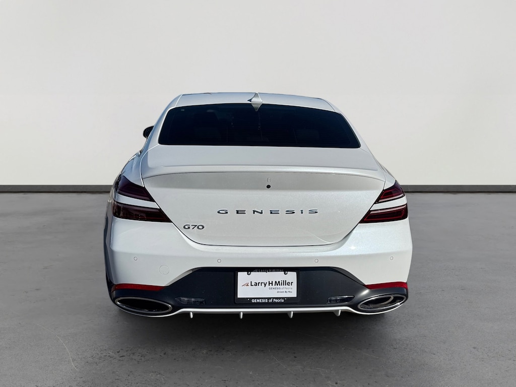 This 2025 Uyuni White Genesis G70 2.5T RWD is well equipped and includes these features and benefits: Sport Prestige Package (12-Way Power Front Passenger Seat, Acoustic Front Door Glass, Alloy Pedals, Dark Chrome Grille & Daylight Opening Trim, Forward & Reverse Parking Distance Warning, Front Passenger Seat Walk-In Device, Integrated Memory System (IMS), Leather Seating Surfaces, Option Group 02, Power Folding ECM Outside Mirrors, Power Telescoping Steering Wheel, Radio: AM/FM/SiriusXM/HD Lexicon Prem Audio System, Rain-Sensing Wipers, Sport Aluminum Trim, Ventilated Front Seats, Wheels: 19 x 8.0J Fr & 19 x 8.5J Rr Sport Alloy, Wide Sunroof, and Wireless Phone Charger), Genesis Certified Certified, 4-Wheel Disc Brakes, 6 Speakers, ABS brakes, Air Conditioning, All Season Fitted Liners, Alloy wheels, AM/FM radio: SiriusXM, Android Auto & Apple CarPlay, Anti-whiplash front head restraints, Auto High-beam Headlights, Auto-dimming Rear-View mirror, Automatic temperature control, Brake assist, Bumpers: body-color, Delay-off headlights, Driver door bin, Driver vanity mirror, Dual front impact airbags, Dual front side impact airbags, Electronic Stability Control, Emergency communication system: Genesis Connected Services, Exterior Parking Camera Rear, First Aid Kit, Four wheel independent suspension, Front anti-roll bar, Front Bucket Seats, Front Center Armrest, Front dual zone A/C, Front reading lights, Fully automatic headlights, Garage door transmitter: HomeLink, Heated door mirrors, Heated front seats, Heated Multi-Adjustable Front Bucket Seats, Illuminated entry, Knee airbag, Leatherette Seating Surfaces, Low tire pressure warning, Navigation System, Occupant sensing airbag, Outside temperature display, Overhead airbag, Overhead console, Panic alarm, Passenger door bin, Passenger vanity mirror, Power door mirrors, Power driver seat, Power passenger seat, Power steering, Power windows, Radio: AM/FM/SiriusXM/HD Audio System, Rear anti-roll bar, Rear reading lights, Rear seat center armrest, Rear side impact airbag, Rear window defroster, Remote keyless entry, Reversible Cargo Tray, Security system, Speed control, Speed-Sensitive Wipers, Split folding rear seat, Steering wheel mounted audio controls, Tachometer, Telescoping steering wheel, Traction control, Trip computer, Turn signal indicator mirrors, Variably intermittent wipers, and Wheels: 19 x 8.0J Fr & 19 x 8.5J Rr Alloy. Genesis Certified Certified, 12-Way Power Front Passenger Seat, 4-Wheel Disc Brakes, 6 Speakers, ABS brakes, Acoustic Front Door Glass, Air Conditioning, All Season Fitted Liners, Alloy Pedals, Alloy wheels, AM/FM radio: SiriusXM, Android Auto & Apple CarPlay, Anti-whiplash front head restraints, Auto High-beam Headlights, Auto-dimming Rear-View mirror, Automatic temperature control, Brake assist, Bumpers: body-color, Dark Chrome Grille & Daylight Opening Trim, Delay-off headlights, Driver door bin, Driver vanity mirror, Dual front impact airbags, Dual front side impact airbags, Electronic Stability Control, Emergency communication system: Genesis Connected Services, Exterior Parking Camera Rear, First Aid Kit, Forward & Reverse Parking Distance Warning, Four wheel independent suspension, Front anti-roll bar, Front Bucket Seats, Front Center Armrest, Front dual zone A/C, Front Passenger Seat Walk-In Device, Front reading lights, Fully automatic headlights, Garage door transmitter: HomeLink, Heated door mirrors, Heated front seats, Heated Multi-Adjustable Front Bucket Seats, Illuminated entry, Integrated Memory System (IMS), Knee airbag, Leather Seating Surfaces, Leatherette Seating Surfaces, Low tire pressure warning, Navigation System, Occupant sensing airbag, Option Group 02, Outside temperature display, Overhead airbag, Overhead console, Panic alarm, Passenger door bin, Passenger vanity mirror, Power door mirrors, Power driver seat, Power Folding ECM Outside Mirrors, Power passenger seat, Power steering, Power Telescoping Steering Wheel, Power windo