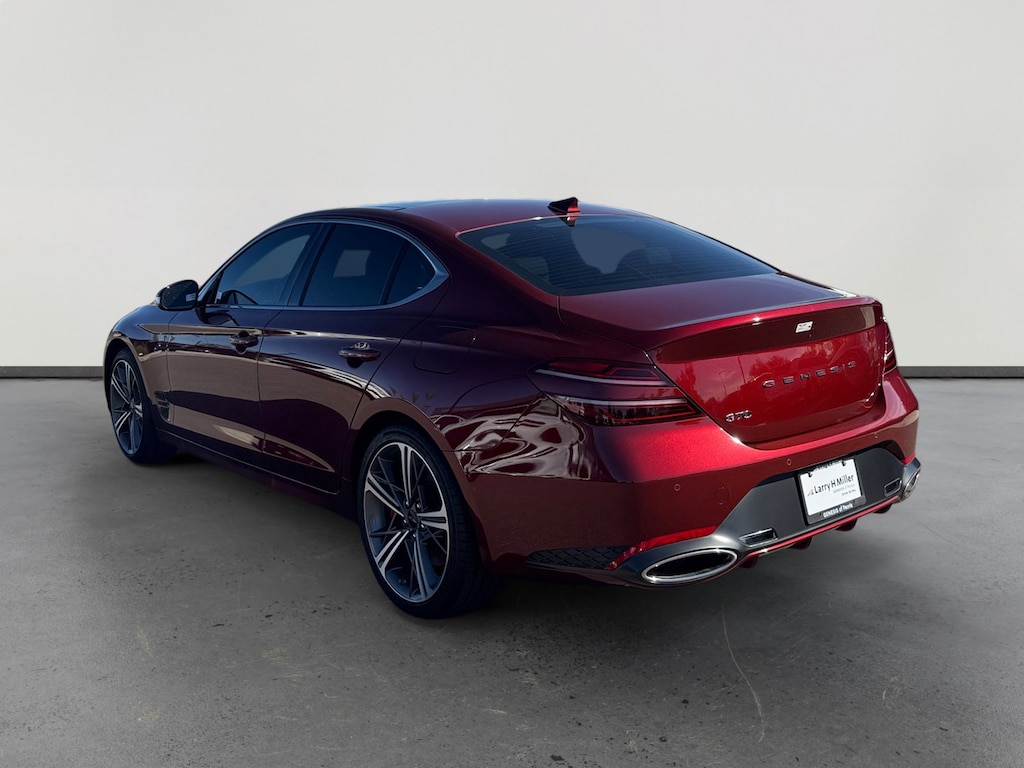 This 2025 Cavendish Red Genesis G70 2.5T RWD is well equipped and includes these features and benefits: Sport Prestige Package (12-Way Power Front Passenger Seat, Acoustic Front Door Glass, Alloy Pedals, Dark Chrome Grille & Daylight Opening Trim, Forward & Reverse Parking Distance Warning, Front Passenger Seat Walk-In Device, Integrated Memory System (IMS), Leather Seating Surfaces, Option Group 02, Power Folding ECM Outside Mirrors, Power Telescoping Steering Wheel, Radio: AM/FM/SiriusXM/HD Lexicon Prem Audio System, Rain-Sensing Wipers, Sport Aluminum Trim, Ventilated Front Seats, Wheels: 19 x 8.0J Fr & 19 x 8.5J Rr Sport Alloy, Wide Sunroof, and Wireless Phone Charger), Genesis Certified Certified, 4-Wheel Disc Brakes, 6 Speakers, ABS brakes, Air Conditioning, All Season Fitted Liners, Alloy wheels, AM/FM radio: SiriusXM, Android Auto & Apple CarPlay, Anti-whiplash front head restraints, Auto High-beam Headlights, Auto-dimming Rear-View mirror, Automatic temperature control, Brake assist, Bumpers: body-color, Delay-off headlights, Driver door bin, Driver vanity mirror, Dual front impact airbags, Dual front side impact airbags, Electronic Stability Control, Emergency communication system: Genesis Connected Services, Exterior Parking Camera Rear, First Aid Kit, Four wheel independent suspension, Front anti-roll bar, Front Bucket Seats, Front Center Armrest, Front dual zone A/C, Front reading lights, Fully automatic headlights, Garage door transmitter: HomeLink, Heated door mirrors, Heated front seats, Heated Multi-Adjustable Front Bucket Seats, Illuminated entry, Knee airbag, Leatherette Seating Surfaces, Low tire pressure warning, Navigation System, Occupant sensing airbag, Outside temperature display, Overhead airbag, Overhead console, Panic alarm, Passenger door bin, Passenger vanity mirror, Power door mirrors, Power driver seat, Power passenger seat, Power steering, Power windows, Radio: AM/FM/SiriusXM/HD Audio System, Rear anti-roll bar, Rear reading lights, Rear seat center armrest, Rear side impact airbag, Rear window defroster, Remote keyless entry, Reversible Cargo Tray, Security system, Speed control, Speed-Sensitive Wipers, Split folding rear seat, Steering wheel mounted audio controls, Tachometer, Telescoping steering wheel, Traction control, Trip computer, Turn signal indicator mirrors, Variably intermittent wipers, and Wheels: 19 x 8.0J Fr & 19 x 8.5J Rr Alloy. Genesis Certified Certified, 12-Way Power Front Passenger Seat, 4-Wheel Disc Brakes, 6 Speakers, ABS brakes, Acoustic Front Door Glass, Air Conditioning, All Season Fitted Liners, Alloy Pedals, Alloy wheels, AM/FM radio: SiriusXM, Android Auto & Apple CarPlay, Anti-whiplash front head restraints, Auto High-beam Headlights, Auto-dimming Rear-View mirror, Automatic temperature control, Brake assist, Bumpers: body-color, Dark Chrome Grille & Daylight Opening Trim, Delay-off headlights, Driver door bin, Driver vanity mirror, Dual front impact airbags, Dual front side impact airbags, Electronic Stability Control, Emergency communication system: Genesis Connected Services, Exterior Parking Camera Rear, First Aid Kit, Forward & Reverse Parking Distance Warning, Four wheel independent suspension, Front anti-roll bar, Front Bucket Seats, Front Center Armrest, Front dual zone A/C, Front Passenger Seat Walk-In Device, Front reading lights, Fully automatic headlights, Garage door transmitter: HomeLink, Heated door mirrors, Heated front seats, Heated Multi-Adjustable Front Bucket Seats, Illuminated entry, Integrated Memory System (IMS), Knee airbag, Leather Seating Surfaces, Leatherette Seating Surfaces, Low tire pressure warning, Navigation System, Occupant sensing airbag, Option Group 02, Outside temperature display, Overhead airbag, Overhead console, Panic alarm, Passenger door bin, Passenger vanity mirror, Power door mirrors, Power driver seat, Power Folding ECM Outside Mirrors, Power passenger seat, Power steering, Power Telescoping Steering Wheel, Power win
