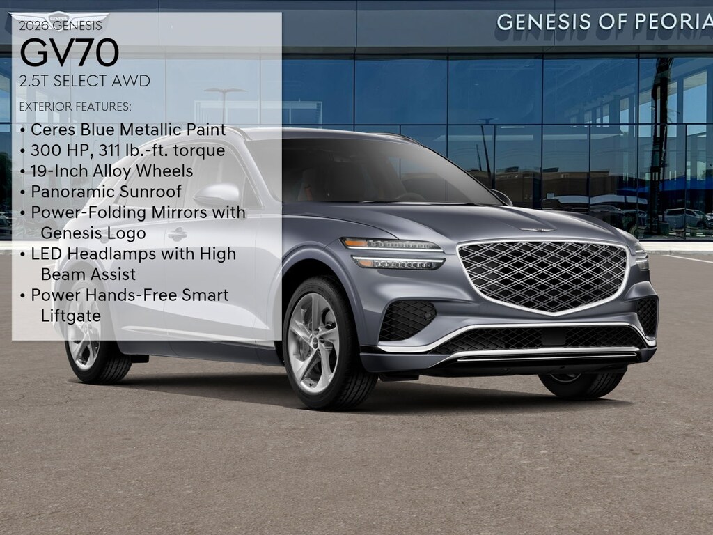 Boasts 28 Highway MPG and 20 City MPG! This Genesis GV70 delivers a Intercooled Turbo Premium Unleaded I-4 2.5 L/152 engine powering this Automatic transmission. Steel Spare Wheel, Lip Spoiler, LED Brakelights.