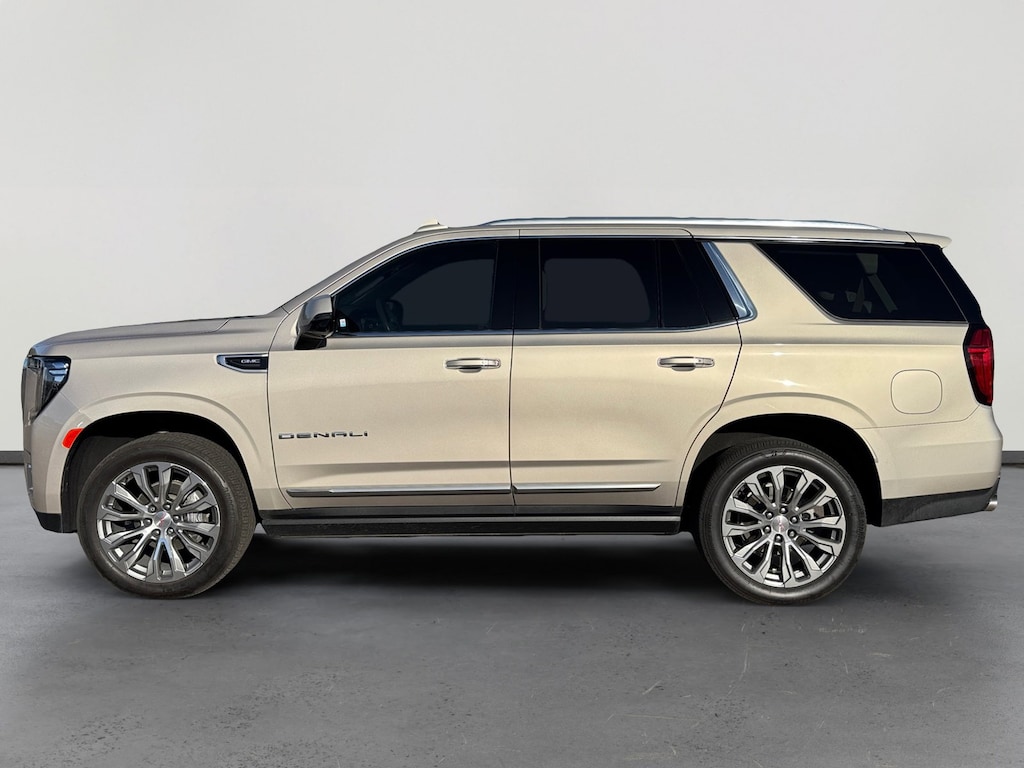 This 2021 Pearl Beige Metallic GMC Yukon Denali 4WD is well equipped and includes these features and benefits: Advanced Security Package (Glass Breakage Sensor, Theft-Deterrent Alarm System, Vehicle Inclination Sensor, and Vehicle Interior Movement Sensor), Advanced Technology Package (Adaptive Cruise Control, Enhanced Automatic Emergency Braking, Inside Rearview Auto-Dimming Rear Camera Mirror, and Rear Camera Mirror Washer), Denali Premium Package (Dual-Pane Panoramic Power Sunroof and Power-Retractable Assist Steps), Max Trailering Package (Extra Capacity Cooling System), Preferred Equipment Group 5SA (12-Way Power Seat Adjusters, 15 Diagonal Multi-Color Head-Up Display, 2 Presets For Outside Rearview Mirrors, 3rd Row 60/40 Power-Folding Split-Bench Seat, Bright Front & Rear Door Sill Plates, Chrome Door Handles w/Body-Color Strip, Dual Exhaust System, Galvano Bodyside Moldings, Hands-Free Power Programmable Rear Liftgate, HD Surround Vision, Heated & Ventilated Driver & Front Passenger Seats, Heated 2nd Row Outboard Position Seats, Heated Automatic Steering Wheel, Heated Driver & Front Passenger Seats, Hill Descent Control, Inside Rear-View Auto-Dimming Mirror, Outside Heated Power-Adjustable Mirrors, Power Release 2nd Row Bucket Seats, Power Tilt & Telescopic Steering Column, Rear Pedestrian Alert, Safety Alert Seat, and Universal Home Remote), 4WD, 14 Speakers, 3.23 Rear Axle Ratio, 3rd row seats: split-bench, 4-Wheel Disc Brakes, ABS brakes, Adaptive suspension, Air Conditioning, Alloy wheels, AM/FM radio: SiriusXM with 360L, Apple CarPlay/Android Auto, Auto High-beam Headlights, Auto-dimming door mirrors, Auto-dimming Rear-View mirror, Auto-leveling suspension, Automatic Emergency Braking, Automatic temperature control, Bodyside moldings, Bose 14-Speaker Surround w/CenterPoint, Brake assist, Bumpers: body-color, Compass, Delay-off headlights, Driver door bin, Driver vanity mirror, Dual front impact airbags, Dual front side impact airbags, Electronic Stability Control, Emergency communication system: OnStar and GMC connected services capable, Following Distance Indicator, Forward Collision Alert, Four wheel independent suspension, Front & Rear Park Assist, Front anti-roll bar, Front Bucket Seats, Front Center Armrest, Front dual zone A/C, Front fog lights, Front Pedestrian Braking, Front reading lights, Fully automatic headlights, Garage door transmitter, HD Radio, Heads-Up Display, Heated door mirrors, Heated front seats, Heated rear seats, Heated steering wheel, Hitch Guidance w/Hitch View, Illuminated entry, In-Vehicle Trailering App, Integrated Trailer Brake Controller, IntelliBeam Automatic High Beam On/Off, Lane Change Alert w/Side Blind Zone Alert, Lane Keep Assist w/Lane Departure Warning, Leather steering wheel, Low tire pressure warning, Magnetic Ride Control Suspension, Memory seat, Navigation System, Occupant sensing airbag, Outside temperature display, Overhead airbag, Overhead console, Panic alarm, Passenger door bin, Passenger vanity mirror, Perforated Leather Seating Surfaces, Power door mirrors, Power driver seat, Power Liftgate, Power passenger seat, Power steering, Power windows, Radio: AM/FM/SiriusXM w/Navigation, Rain sensing wipers, Rear air conditioning, Rear anti-roll bar, Rear Cross Traffic Alert, Rear reading lights, Rear Seat Media System, Rear window defroster, Rear window wiper, Remote keyless entry, Roof rack: rails only, Security system, SiriusXM w/360L, Speed control, Speed-sensing steering, Split folding rear seat, Spoiler, Steering wheel memory, Steering wheel mounted audio controls, Tachometer, Telescoping steering wheel, Tilt steering wheel, Traction control, Trailer Side Blind Zone Alert, Trip computer, Turn signal indicator mirrors, Variably intermittent wipers, Ventilated front seats, Voltmeter, Wheel Locks, Wheels: 20 x 9 6-Spoke Polished Aluminum, and Wheels: 22 x 9 Bright Machined Aluminum. 4WD, 12-Way Power Seat Adjusters, 14 Speakers, 15 Diagonal Multi-Color Head-Up Disp