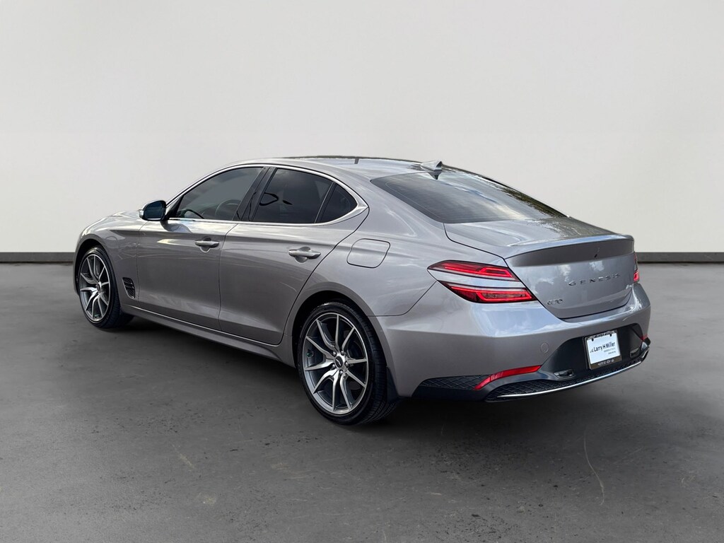 This 2023 Savile Silver Genesis G70 2.0T AWD is well equipped and includes these features and benefits: Option Group 01, 4-Wheel Disc Brakes, 6 Speakers, ABS brakes, Air Conditioning, Alloy wheels, AM/FM radio: SiriusXM, Android Auto & Apple CarPlay, Anti-whiplash front head restraints, Auto High-beam Headlights, Auto-dimming Rear-View mirror, Automatic temperature control, Brake assist, Bumpers: body-color, Delay-off headlights, Driver door bin, Driver vanity mirror, Dual front impact airbags, Dual front side impact airbags, Electronic Stability Control, Emergency communication system: Genesis Connected Services, Exterior Parking Camera Rear, Four wheel independent suspension, Front anti-roll bar, Front Bucket Seats, Front Center Armrest, Front dual zone A/C, Front reading lights, Fully automatic headlights, Garage door transmitter: HomeLink, Heated door mirrors, Heated front seats, Heated Multi-Adjustable Front Bucket Seats, Heated steering wheel, Illuminated entry, Knee airbag, Leatherette Seating Surfaces, Low tire pressure warning, Mudguards, Navigation System, Occupant sensing airbag, Outside temperature display, Overhead airbag, Overhead console, Panic alarm, Passenger door bin, Passenger vanity mirror, Power door mirrors, Power driver seat, Power passenger seat, Power steering, Power windows, Premium First Aid Kit, Radio: AM/FM/SiriusXM/HD Audio System, Rear anti-roll bar, Rear reading lights, Rear seat center armrest, Rear window defroster, Remote keyless entry, Reversible Cargo Tray, Security system, Speed control, Speed-Sensitive Wipers, Split folding rear seat, Steering wheel mounted audio controls, Tachometer, Telescoping steering wheel, Traction control, Trip computer, Turn signal indicator mirrors, Variably intermittent wipers, and Wheels: 19 x 8.0J Fr & 19 x 8.5J Rr Alloy. 4-Wheel Disc Brakes, 6 Speakers, ABS brakes, Air Conditioning, Alloy wheels, AM/FM radio: SiriusXM, Android Auto & Apple CarPlay, Anti-whiplash front head restraints, Auto High-beam Headlights, Auto-dimming Rear-View mirror, Automatic temperature control, Brake assist, Bumpers: body-color, Delay-off headlights, Driver door bin, Driver vanity mirror, Dual front impact airbags, Dual front side impact airbags, Electronic Stability Control, Emergency communication system: Genesis Connected Services, Exterior Parking Camera Rear, Four wheel independent suspension, Front anti-roll bar, Front Bucket Seats, Front Center Armrest, Front dual zone A/C, Front reading lights, Fully automatic headlights, Garage door transmitter: HomeLink, Heated door mirrors, Heated front seats, Heated Multi-Adjustable Front Bucket Seats, Heated steering wheel, Illuminated entry, Knee airbag, Leatherette Seating Surfaces, Low tire pressure warning, Mudguards, Navigation System, Occupant sensing airbag, Option Group 01, Outside temperature display, Overhead airbag, Overhead console, Panic alarm, Passenger door bin, Passenger vanity mirror, Power door mirrors, Power driver seat, Power passenger seat, Power steering, Power windows, Premium First Aid Kit, Radio: AM/FM/SiriusXM/HD Audio System, Rear anti-roll bar, Rear reading lights, Rear seat center armrest, Rear window defroster, Remote keyless entry, Reversible Cargo Tray, Security system, Speed control, Speed-Sensitive Wipers, Split folding rear seat, Steering wheel mounted audio controls, Tachometer, Telescoping steering wheel, Traction control, Trip computer, Turn signal indicator mirrors, Variably intermittent wipers, Wheels: 19 x 8.0J Fr & 19 x 8.5J Rr Alloy.