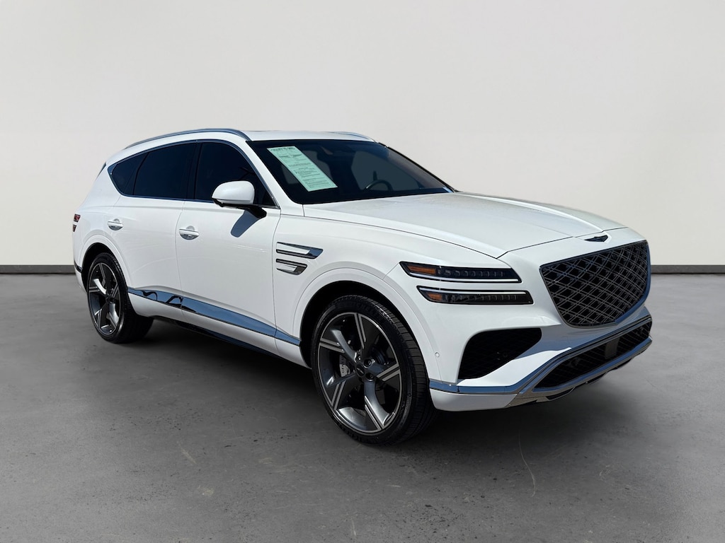 This 2025 Uyuni White Genesis GV80 3.5T Prestige AWD is well equipped and includes these features and benefits: Option Group 01, Genesis Certified Certified, 18 Speakers, 4-Wheel Disc Brakes, ABS brakes, Adaptive suspension, Air Conditioning, Alloy wheels, AM/FM radio: SiriusXM, Anti-whiplash front head restraints, Auto High-beam Headlights, Auto tilt-away steering wheel, Auto-dimming door mirrors, Auto-dimming Rear-View mirror, Automatic temperature control, Brake assist, Bumpers: body-color, Cargo Net, Compass, Delay-off headlights, Driver door bin, Driver vanity mirror, Dual front impact airbags, Dual front side impact airbags, Electronic Stability Control, Emergency communication system: Genesis Connected Services, Exterior Parking Camera Rear, First Aid Kit, Four wheel independent suspension, Fragrance Cartridge, Front anti-roll bar, Front Bucket Seats, Front Center Armrest, Front dual zone A/C, Front reading lights, Fully automatic headlights, Garage door transmitter: HomeLink, Genuine wood console insert, Genuine wood dashboard insert, Genuine wood door panel insert, Heads-Up Display, Heated & Ventilated Front Bucket Seats, Heated door mirrors, Heated front seats, Heated rear seats, Heated steering wheel, Illuminated entry, Knee airbag, Leather steering wheel, Low tire pressure warning, Memory seat, Nappa Leather Seating Surfaces, Navigation System, NFC Key Card, Occupant sensing airbag, Outside temperature display, Overhead airbag, Overhead console, Panic alarm, Passenger door bin, Passenger vanity mirror, Power door mirrors, Power driver seat, Power Liftgate, Power moonroof, Power passenger seat, Power steering, Power windows, Radio data system, Radio: AM/FM/SiriusXM/HD Bang & Olufsen Sound Sys, Rain sensing wipers, Rear air conditioning, Rear anti-roll bar, Rear reading lights, Rear seat center armrest, Rear side impact airbag, Rear window defroster, Rear window wiper, Remote keyless entry, Security system, Speed control, Speed-sensing steering, Speed-Sensitive Wipers, Split folding rear seat, Spoiler, Steering wheel memory, Steering wheel mounted audio controls, Tachometer, Telescoping steering wheel, Tilt steering wheel, Traction control, Trip computer, Turn signal indicator mirrors, Variably intermittent wipers, Ventilated front seats, Ventilated rear seats, and Wheels: 22 x 9.5J Dark Gray Matte Alloy. Genesis Certified Certified, 18 Speakers, 4-Wheel Disc Brakes, ABS brakes, Adaptive suspension, Air Conditioning, Alloy wheels, AM/FM radio: SiriusXM, Anti-whiplash front head restraints, Auto High-beam Headlights, Auto tilt-away steering wheel, Auto-dimming door mirrors, Auto-dimming Rear-View mirror, Automatic temperature control, Brake assist, Bumpers: body-color, Cargo Net, Compass, Delay-off headlights, Driver door bin, Driver vanity mirror, Dual front impact airbags, Dual front side impact airbags, Electronic Stability Control, Emergency communication system: Genesis Connected Services, Exterior Parking Camera Rear, First Aid Kit, Four wheel independent suspension, Fragrance Cartridge, Front anti-roll bar, Front Bucket Seats, Front Center Armrest, Front dual zone A/C, Front reading lights, Fully automatic headlights, Garage door transmitter: HomeLink, Genuine wood console insert, Genuine wood dashboard insert, Genuine wood door panel insert, Heads-Up Display, Heated & Ventilated Front Bucket Seats, Heated door mirrors, Heated front seats, Heated rear seats, Heated steering wheel, Illuminated entry, Knee airbag, Leather steering wheel, Low tire pressure warning, Memory seat, Nappa Leather Seating Surfaces, Navigation System, NFC Key Card, Occupant sensing airbag, Option Group 01, Outside temperature display, Overhead airbag, Overhead console, Panic alarm, Passenger door bin, Passenger vanity mirror, Power door mirrors, Power driver seat, Power Liftgate, Power moonroof, Power passenger seat, Power steering, Power windows, Radio data system, Radio: AM/FM/SiriusXM/HD Bang & Olufsen Sound Sys, Rain sensing wipers,