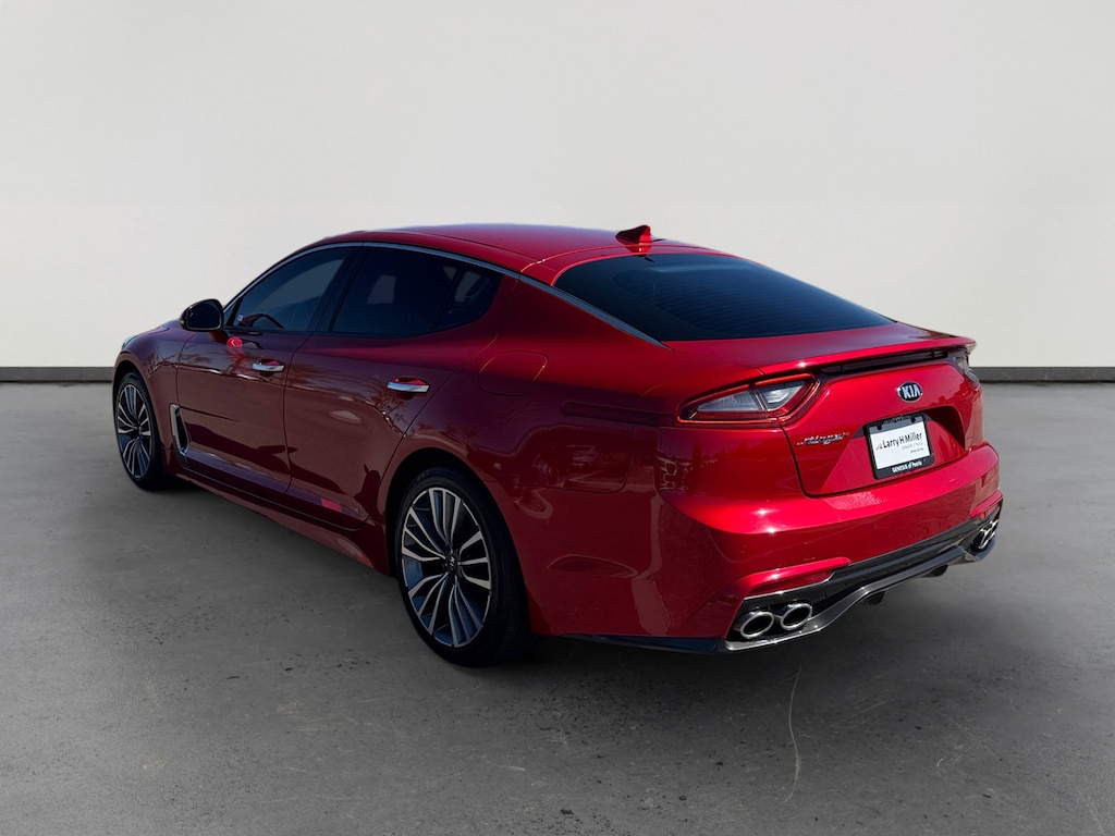 This 2019 HiChroma Red Kia Stinger Base RWD is well equipped and includes these features and benefits: 4-Wheel Disc Brakes, 6 Speakers, ABS brakes, Air Conditioning, Alloy wheels, AM/FM radio: SiriusXM, Anti-whiplash front head restraints, Apple CarPlay & Android Auto, Auto-dimming Rear-View mirror, Automatic temperature control, Brake assist, Bumper Applique, Bumpers: body-color, Delay-off headlights, Driver door bin, Driver vanity mirror, Dual front impact airbags, Dual front side impact airbags, Electronic Stability Control, Emergency communication system: UVO eServices, Exterior Parking Camera Rear, Four wheel independent suspension, Front anti-roll bar, Front Bucket Seats, Front Center Armrest, Front dual zone A/C, Front reading lights, Fully automatic headlights, Heated door mirrors, Heated Front Bucket Seats, Heated front seats, Illuminated entry, Knee airbag, Leather Seat Trim, Low tire pressure warning, Occupant sensing airbag, Outside temperature display, Overhead airbag, Overhead console, Panic alarm, Passenger door bin, Passenger vanity mirror, Power door mirrors, Power driver seat, Power passenger seat, Power steering, Power windows, Radio: AM/FM/MP3/HD/SiriusXM Audio System, Rear air conditioning, Rear anti-roll bar, Rear reading lights, Rear seat center armrest, Rear window defroster, Remote keyless entry, Security system, Speed control, Speed-Sensitive Wipers, Split folding rear seat, Spoiler, Steering wheel mounted audio controls, Tachometer, Telescoping steering wheel, Tilt steering wheel, Traction control, Trip computer, Turn signal indicator mirrors, Variably intermittent wipers, and Wheels: 18 x 8J Machined Finish Alloy. 4-Wheel Disc Brakes, 6 Speakers, ABS brakes, Air Conditioning, Alloy wheels, AM/FM radio: SiriusXM, Anti-whiplash front head restraints, Apple CarPlay & Android Auto, Auto-dimming Rear-View mirror, Automatic temperature control, Brake assist, Bumper Applique, Bumpers: body-color, Delay-off headlights, Driver door bin, Driver vanity mirror, Dual front impact airbags, Dual front side impact airbags, Electronic Stability Control, Emergency communication system: UVO eServices, Exterior Parking Camera Rear, Four wheel independent suspension, Front anti-roll bar, Front Bucket Seats, Front Center Armrest, Front dual zone A/C, Front reading lights, Fully automatic headlights, Heated door mirrors, Heated Front Bucket Seats, Heated front seats, Illuminated entry, Knee airbag, Leather Seat Trim, Low tire pressure warning, Occupant sensing airbag, Outside temperature display, Overhead airbag, Overhead console, Panic alarm, Passenger door bin, Passenger vanity mirror, Power door mirrors, Power driver seat, Power passenger seat, Power steering, Power windows, Radio: AM/FM/MP3/HD/SiriusXM Audio System, Rear air conditioning, Rear anti-roll bar, Rear reading lights, Rear seat center armrest, Rear window defroster, Remote keyless entry, Security system, Speed control, Speed-Sensitive Wipers, Split folding rear seat, Spoiler, Steering wheel mounted audio controls, Tachometer, Telescoping steering wheel, Tilt steering wheel, Traction control, Trip computer, Turn signal indicator mirrors, Variably intermittent wipers, Wheels: 18 x 8J Machined Finish Alloy.